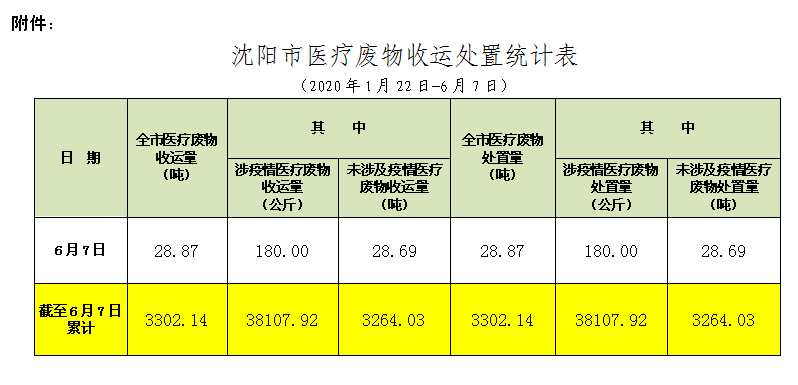 附件:沈阳市医疗废物收运处置统计表