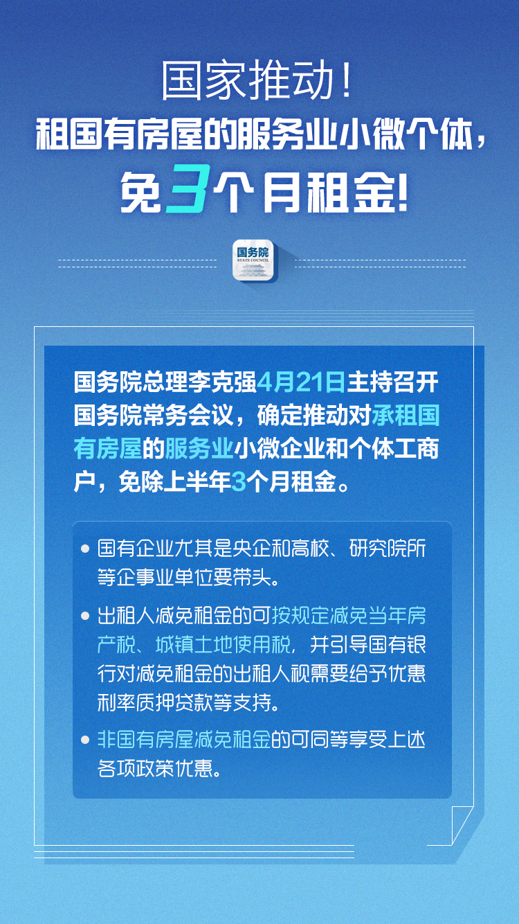 国家推动!租国有房屋的服务业小微个体,免3个月租金!