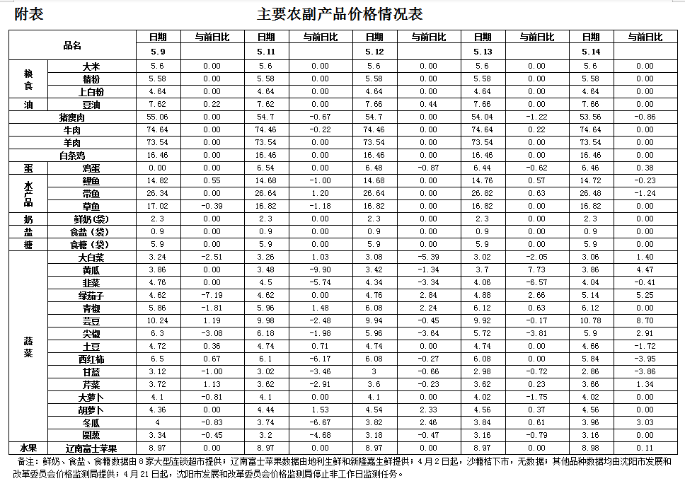 附表:主要农副产品价格情况表