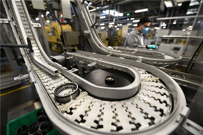 在宁夏银川市经济开发区内,舍弗勒(宁夏)有限公司员工在汽车轴承车间忙碌。