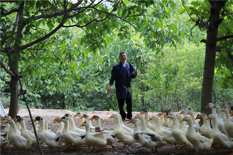 舟曲县曲瓦乡城马村村民在赶土鸭。甘肃省甘南藏族自治州舟曲县在脱贫攻坚过程中,结合当地资源优势与环境特点,大力发展特色农产品种植和林下养殖,促进当地农民增收致富。